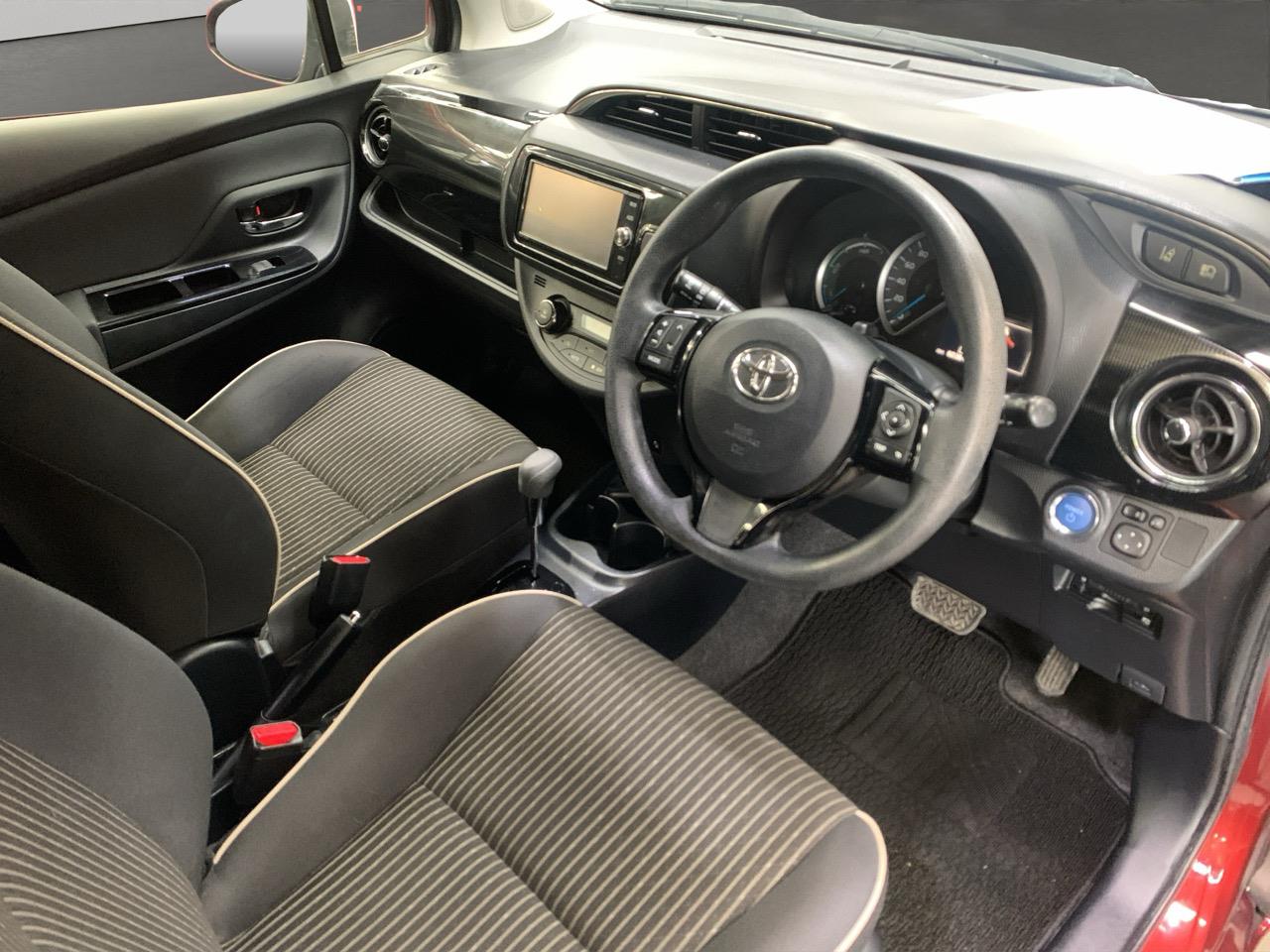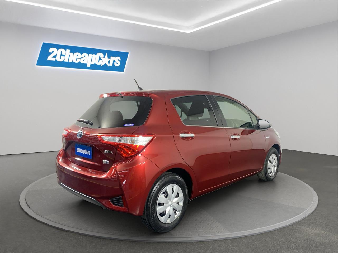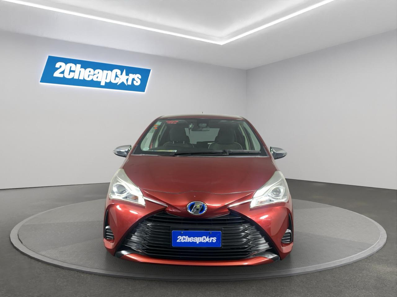 A bright Red Toyota Vitz Hybrid thats easy to drive, low on running costs, and built with Toyotas trusted reliability. Compact yet comfortable, its perfect for city living or everyday commuting with smooth hybrid performance.
