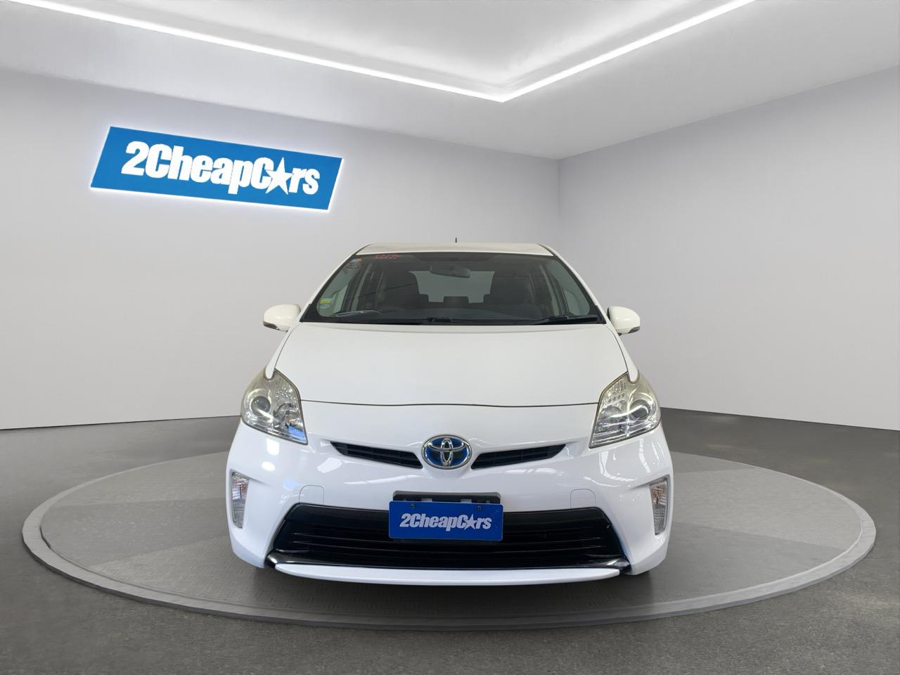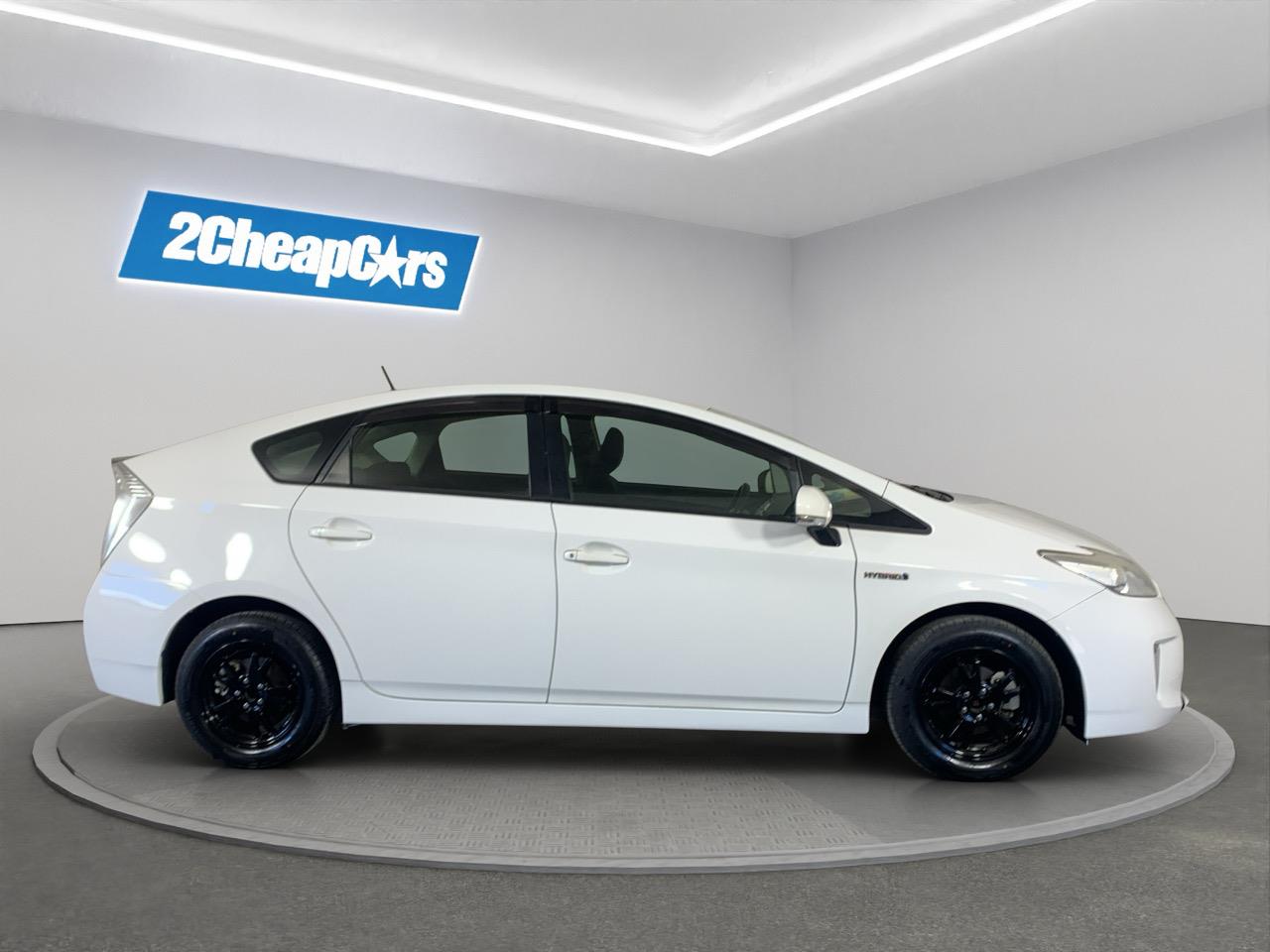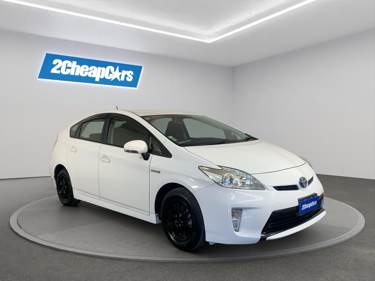 A clean pearl-white Toyota Prius Hybrid offering excellent fuel economy, smooth driving, and Toyotas long-proven hybrid reliability.