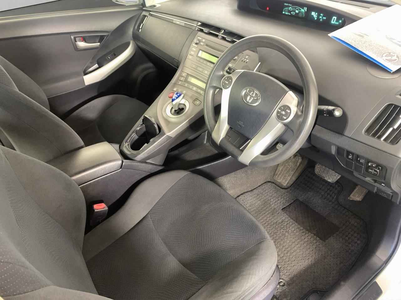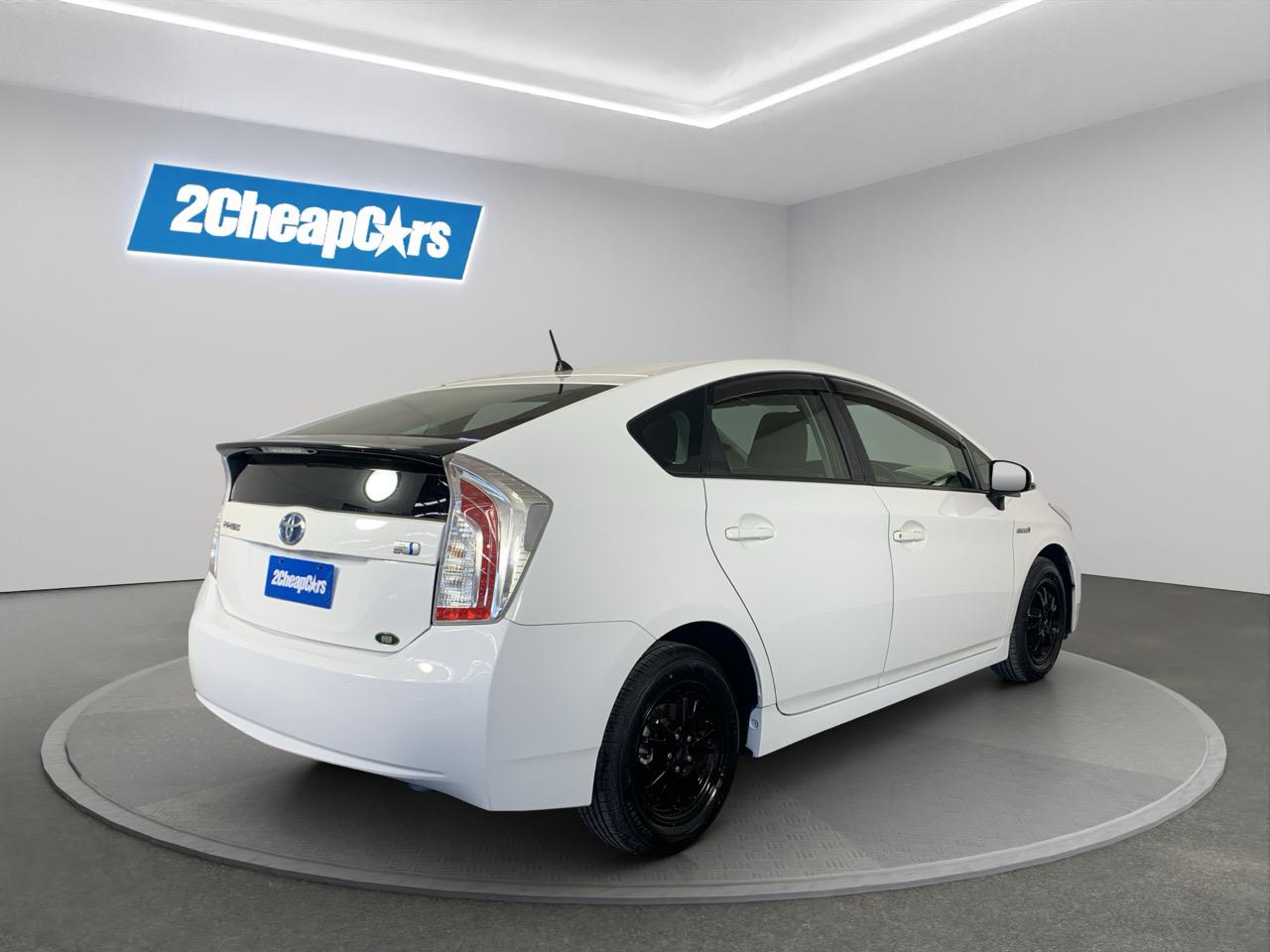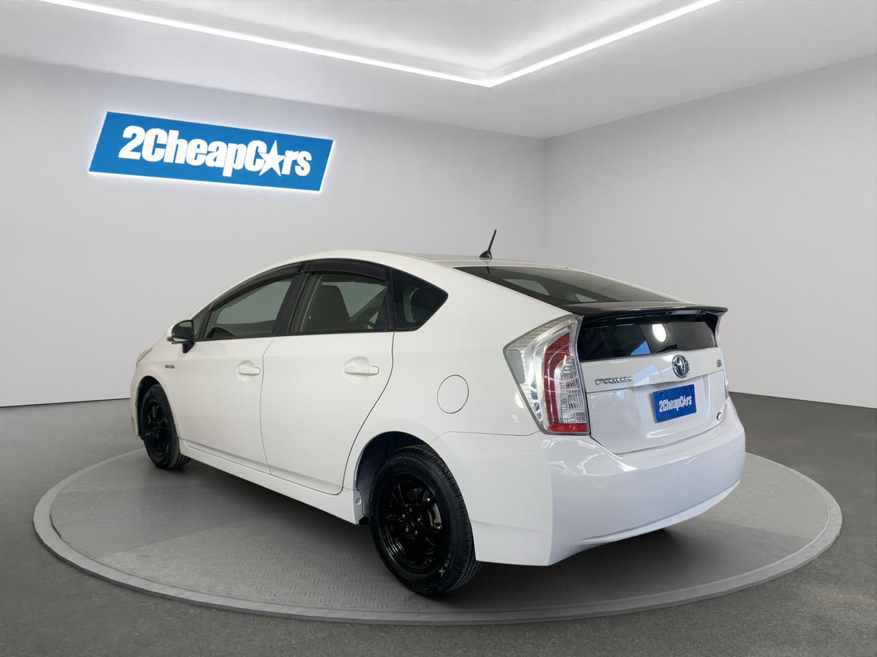 A clean pearl-white Toyota Prius Hybrid offering excellent fuel economy, smooth driving, and Toyotas long-proven hybrid reliability.