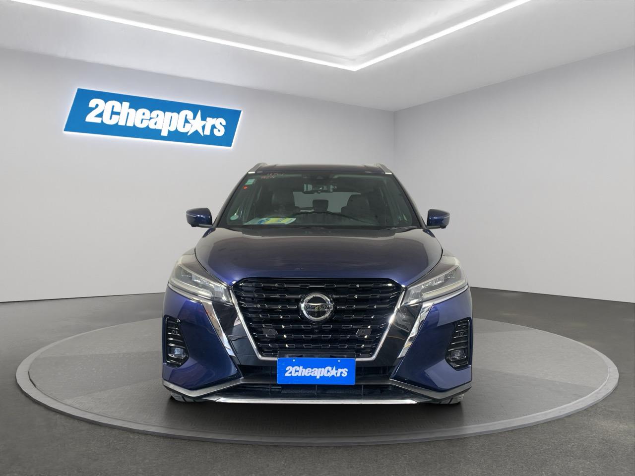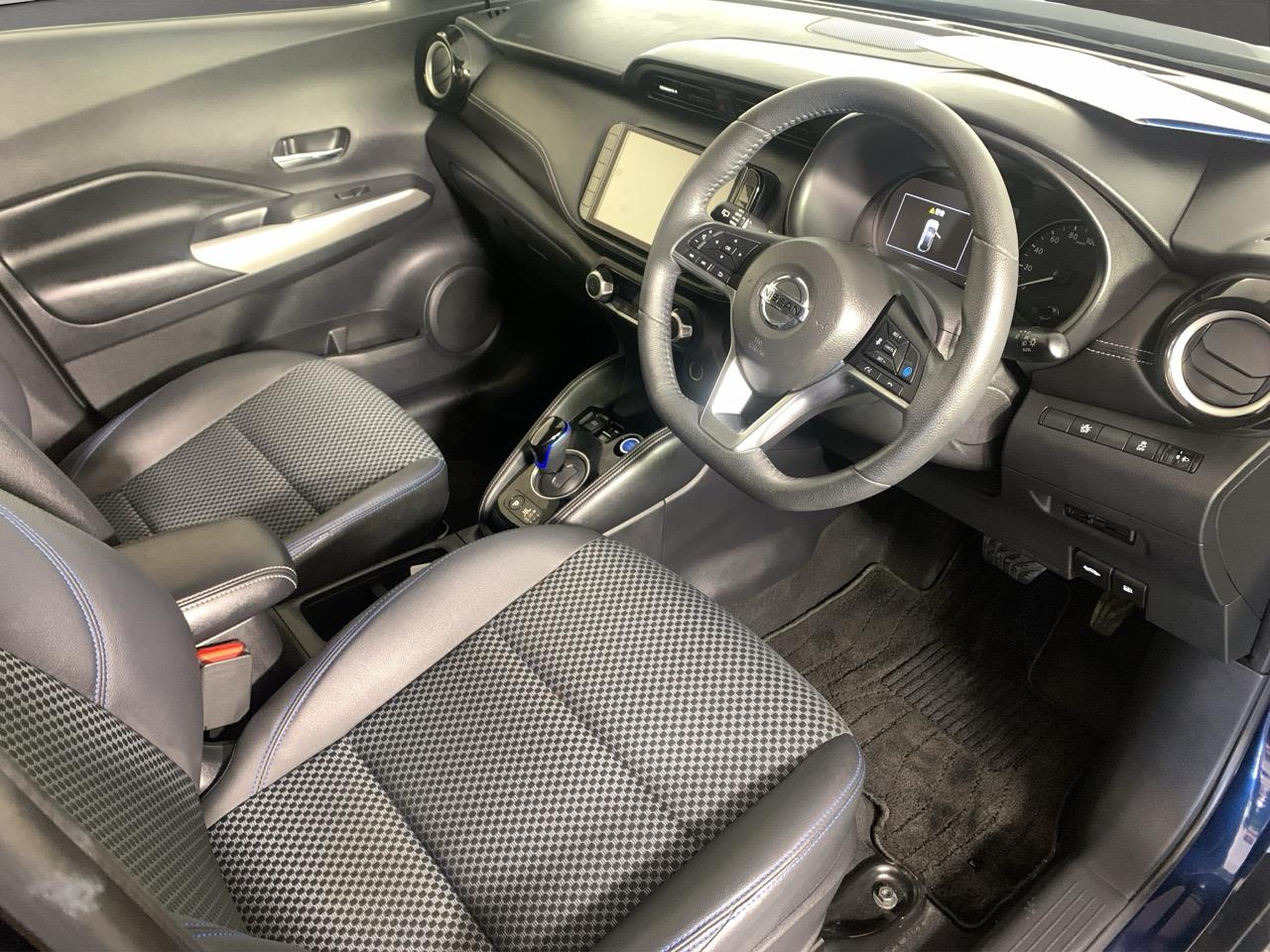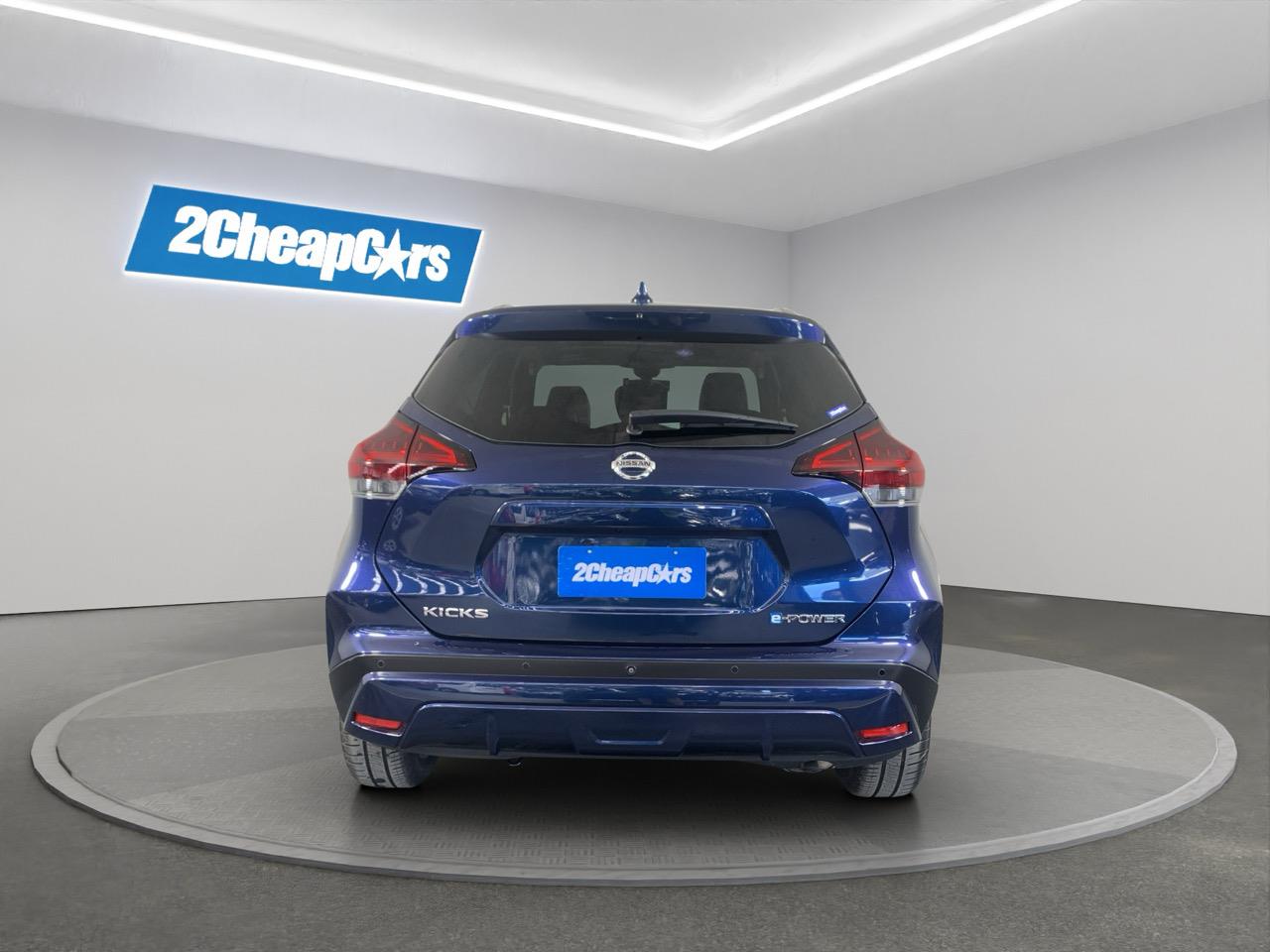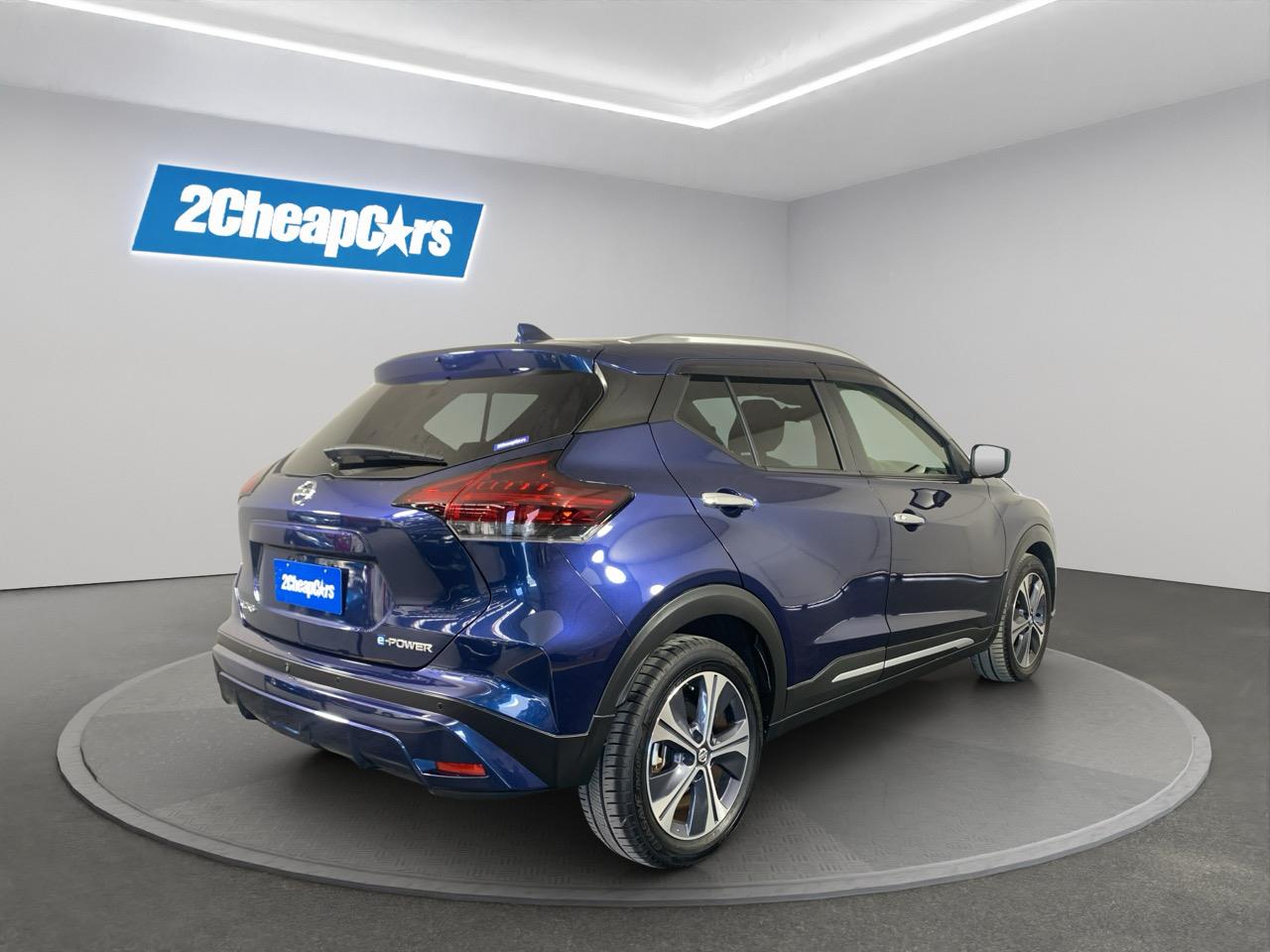 This Blue Kicks E-Power blends hybrid smoothness with a roomy cabin and a light, easy drive. Half-leather seats and Nissans quiet electric-assist system make it great for commuting and weekend trips.