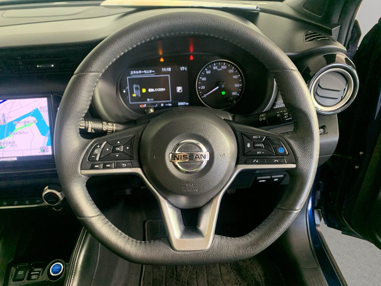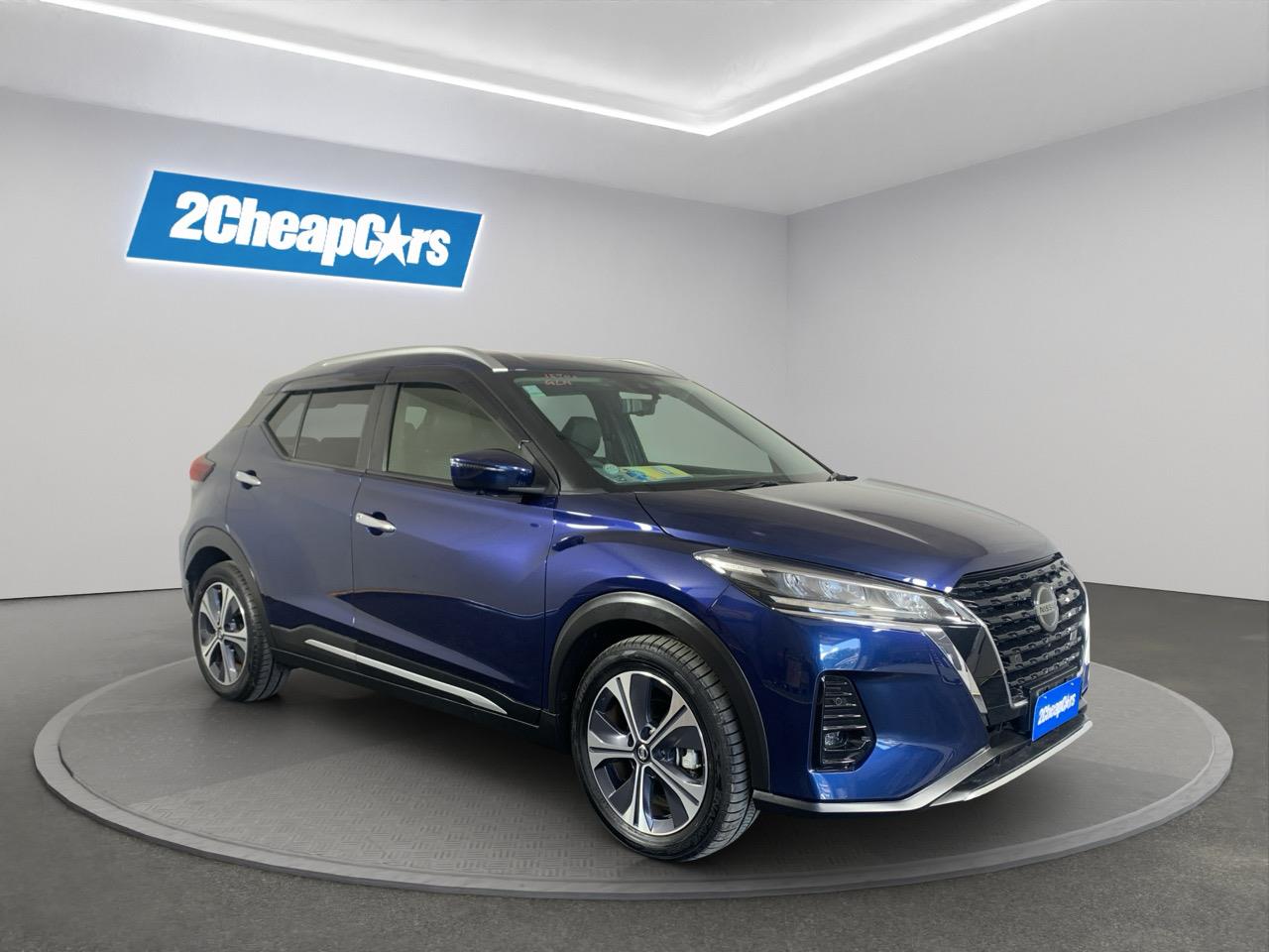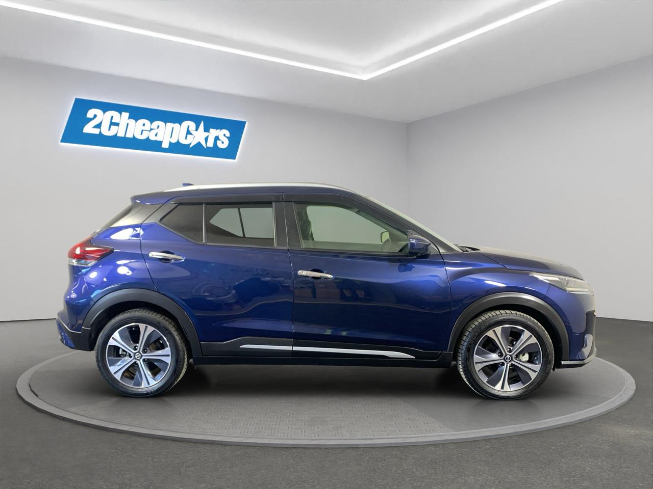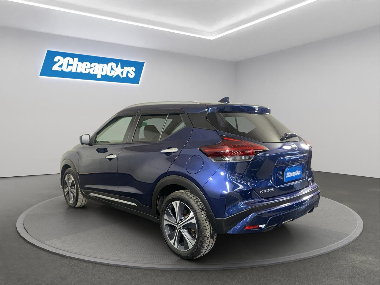 This Blue Kicks E-Power blends hybrid smoothness with a roomy cabin and a light, easy drive. Half-leather seats and Nissans quiet electric-assist system make it great for commuting and weekend trips.