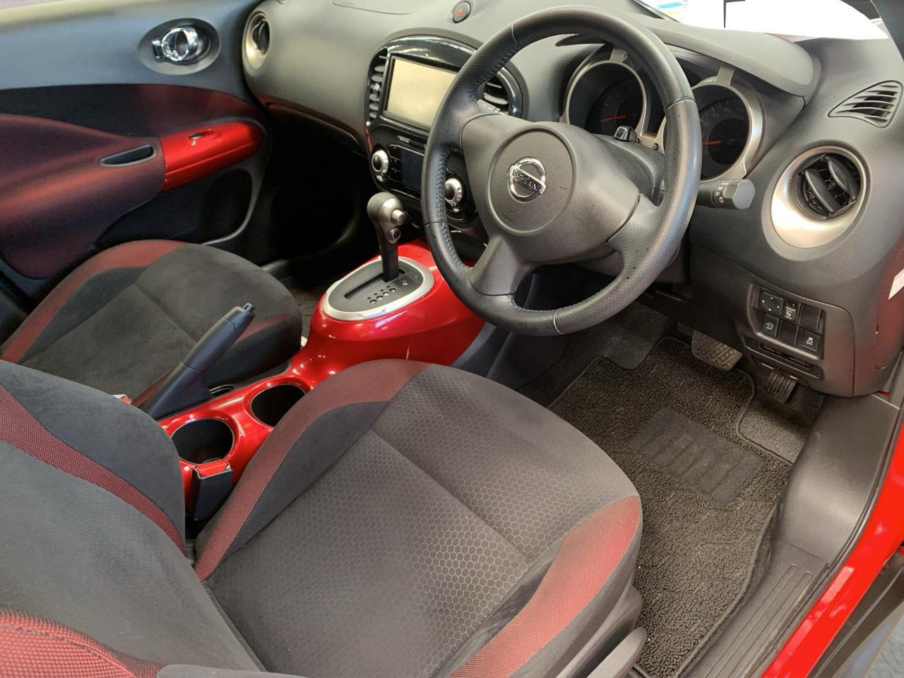 A bold Red Juke with its standout design, compact SUV versatility, and smooth 1.5L petrol automaticperfect for city driving with personality.